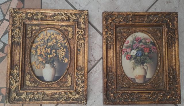 Due quadri dipinti con soggetto vasi di fiori dipinti su tela. Completi di cornice in vero legno. Misure 29x24 ciascuno Disponibili anche singolarmente