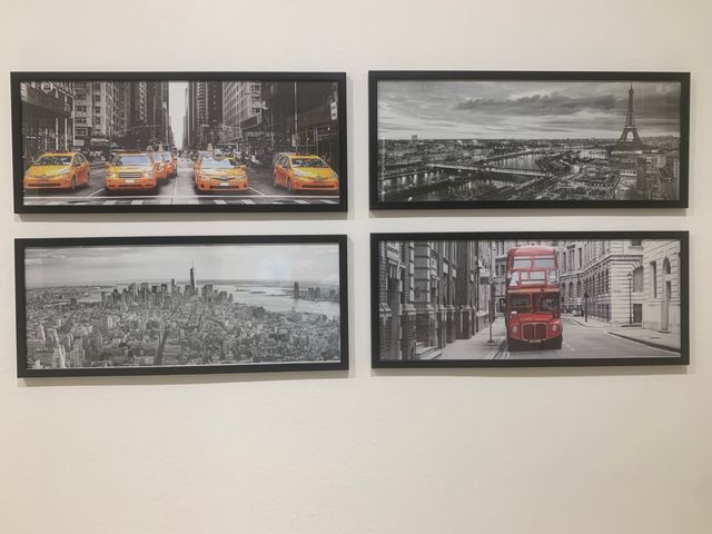 Set di 4 quadri 20x50cm stampe su cornice nera in legno come nuovi
