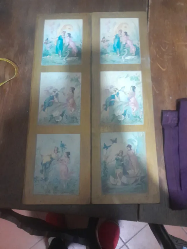 Dettagli del prodottoSet di duequadretti9 decorativi con scene pastorali e figure mitologiche.