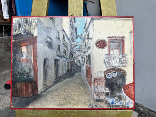 Dipinto ad olio su legno raffigurante un vicolo con edifici. - Dimensioni: 30x40 cm. - Tecnica: Olio su legno