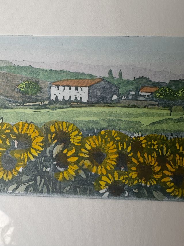 Quadro a tecnica acquaforte e acquerello: girasoli