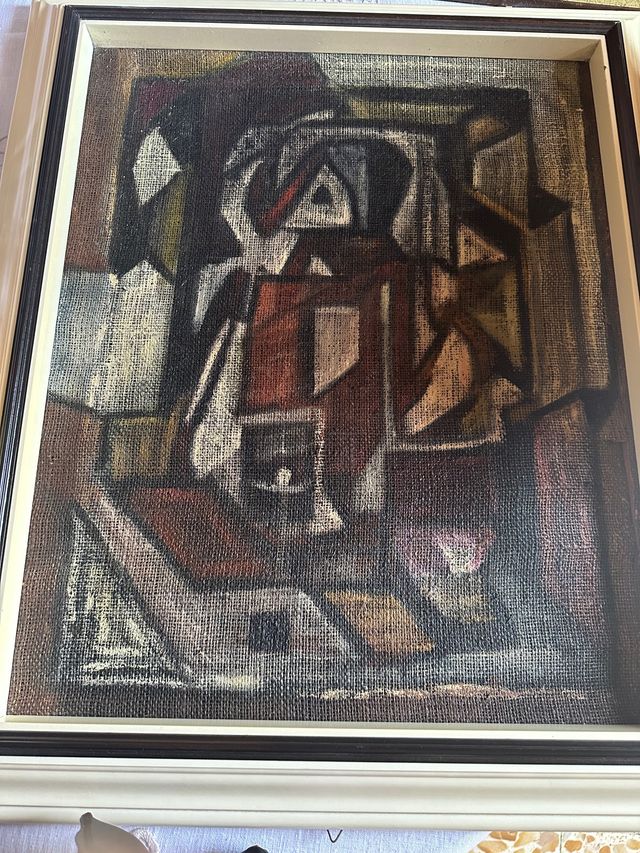 Bellissimo quadro fatto su tela da sacco cornice in legno lavorata a mano
