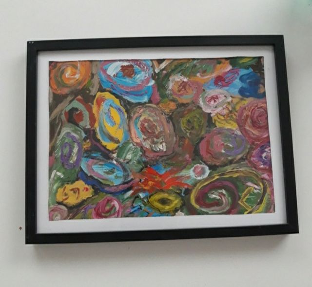 Dettagli del prodottoQuadro astratto olio su legno 42x32 con cornice e vetro pittore ermes Misure del prodotto