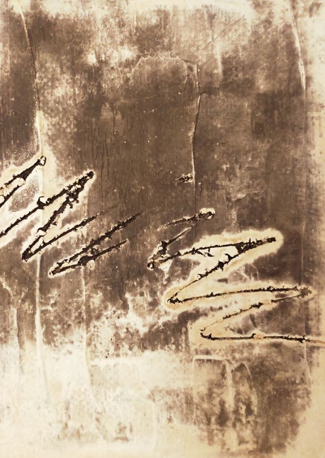 Dettagli del prodottoquadro dal titolo : graffiti .tecnica mista su tela di juta :gesso, pigmenti ,resina. Il tempo che passa lascia segni graffiti nei muri delle città o altro che donano un fascino particolare (la nostra storia). Misure cm 30 x 30 x 4 .