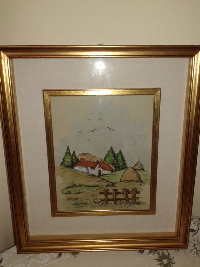 QUADRO CASA IN CAMPAGNA in cornice di legno 36X42