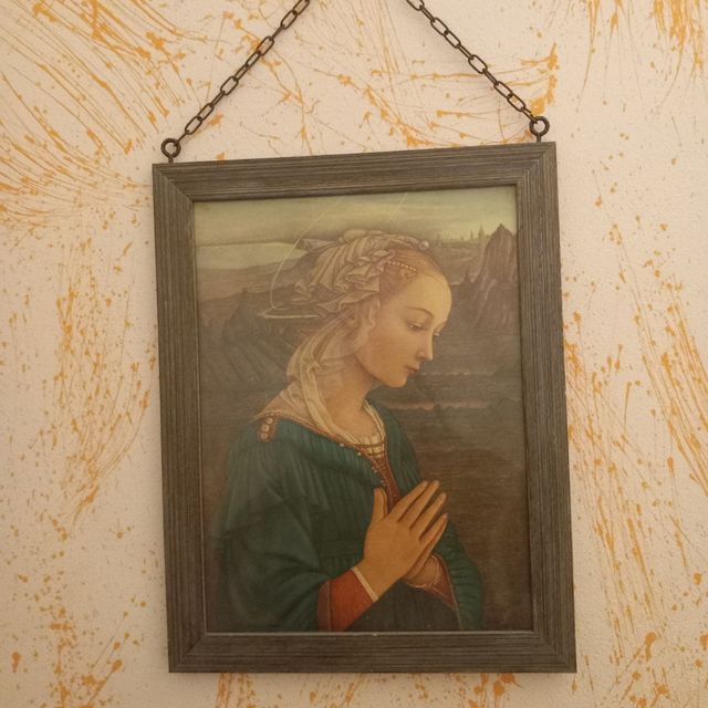 Bellissimo quadro con cornice sabbiata azzurra e bianca.