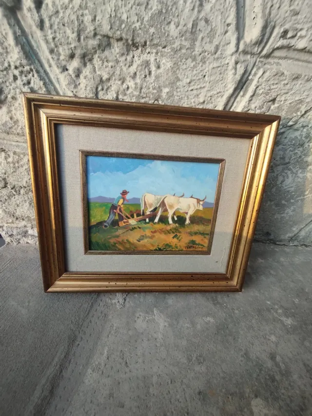 Quadro con contadini e buoi