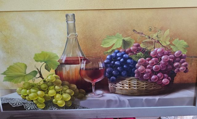 Dettagli del prodottoQuadro con uva e vino con cornice coordinata 60x110 Misure del prodotto