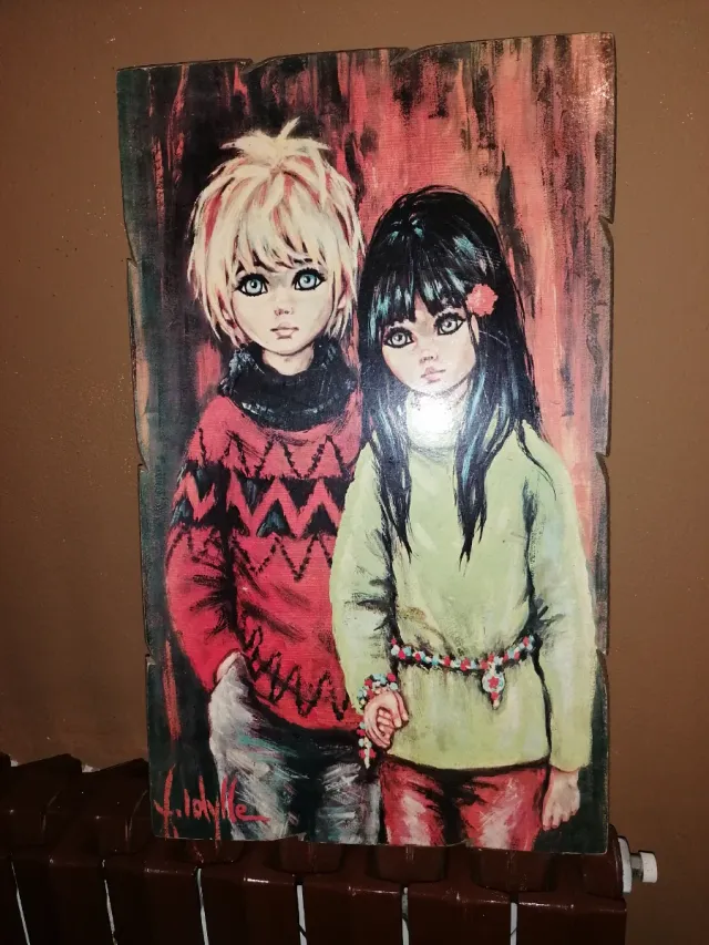 Quadro decorativo raffigurante due bambini. - Stile artistico unico. - Colori vivaci e dettagli curati. - Firmato dall'artista.