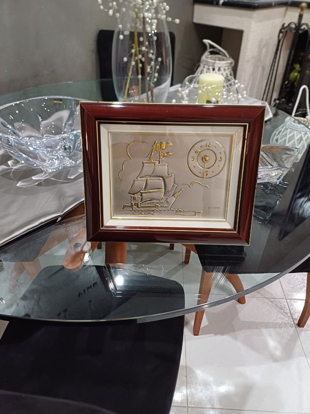 Dettagli del prodottoBellissimo quadro con sveglietta in argento e cornice. Si può appendere ho appoggiare, Ottime condizione la sveglietta però non funziona da sistemare. Misura 30x25cm. Cornice bella spessa,e in pelle di dietro