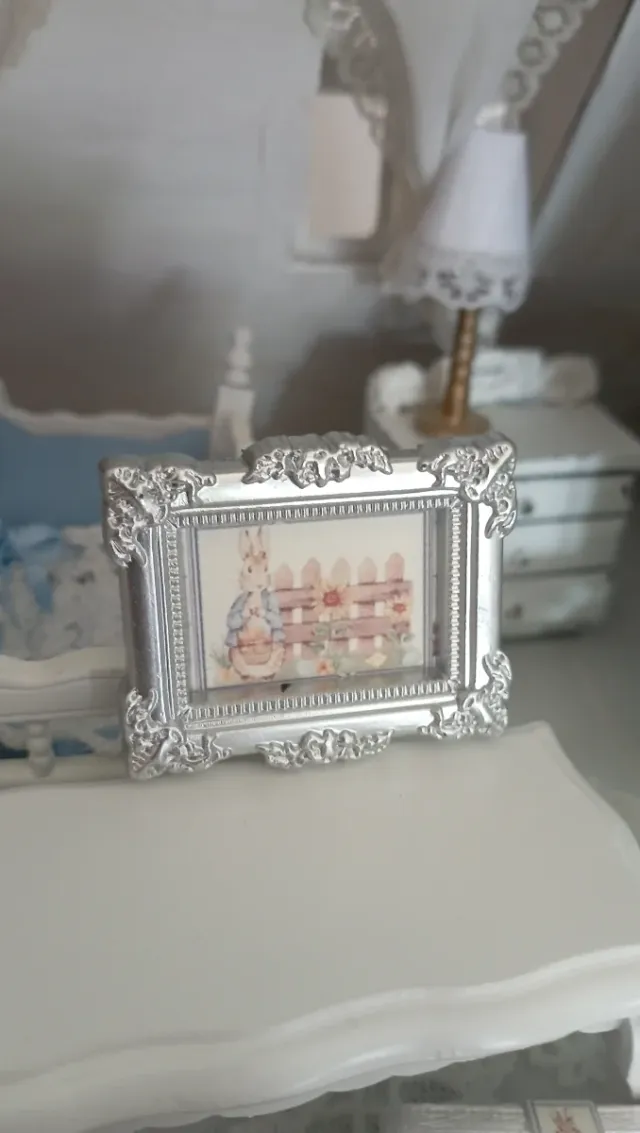 Dettagli del prodottoDelizioso quadro in miniatura per casa delle bambole, scala 1:12, a tema Peter Rabbit. Perfetto per collezionisti.