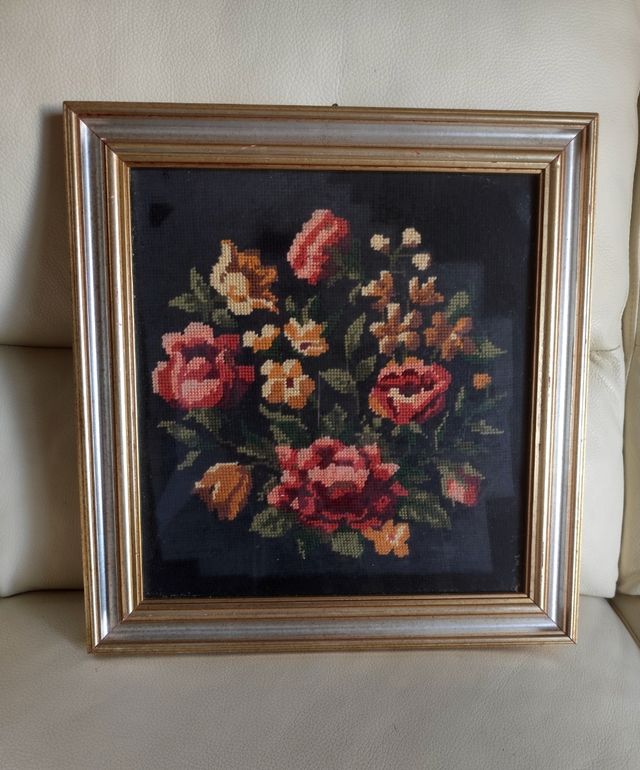Come nuovo · Ricamo mezzo punto · Nero e Multicolore · Lana e Vetro e Legna