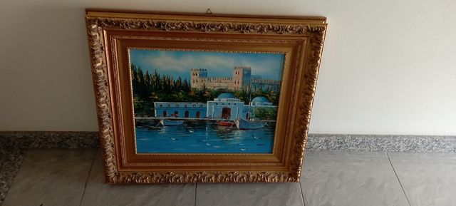 Dettagli del prodottoQuadro su tela con cornice oro. Come nuovo mai usato. Larghezza 73 cm altezza 63 cm Misure del prodotto