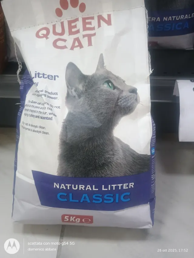Dettagli del prodottoLettiera agglomerante per gatti Queen Cat, profumata e con alto potere assorbente.