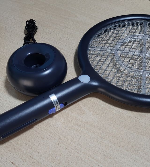 Racchetta Zanzare Elettrica 2-in-1 da 4000V con base di ricarica usb con anche una luce LED.