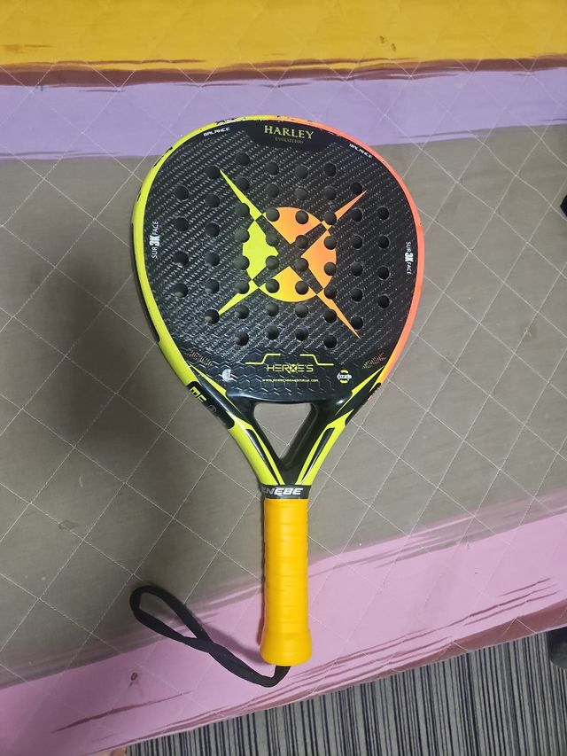 Racchetta da padel Harley Evolution con un design moderno e accattivante. - Superficie in carbonio. - Bilanciamento ottimizzato. - Colore giallo e arancione.