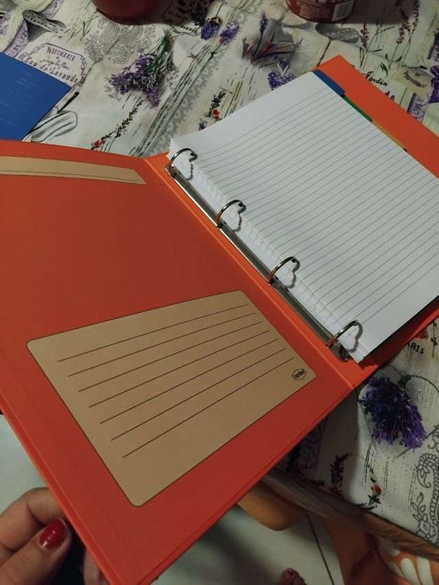 Dettagli del prodottoVendo raccoglitore ad anelli di colore arancione, nuovo. È incluso il blocco di fogli tutto come in foto.