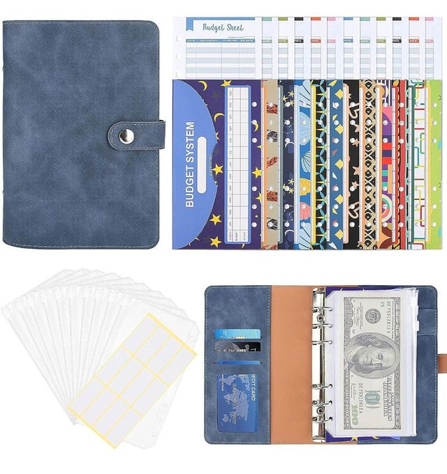 Dettagli del prodottoRaccoglitore economico A6 nero, raccoglitore per notebook a 6 anelli in pelle PU con 10 buste per contanti e 12 fogli per budget spese e 2 etichette adesive e 12 buste multicolori tasche