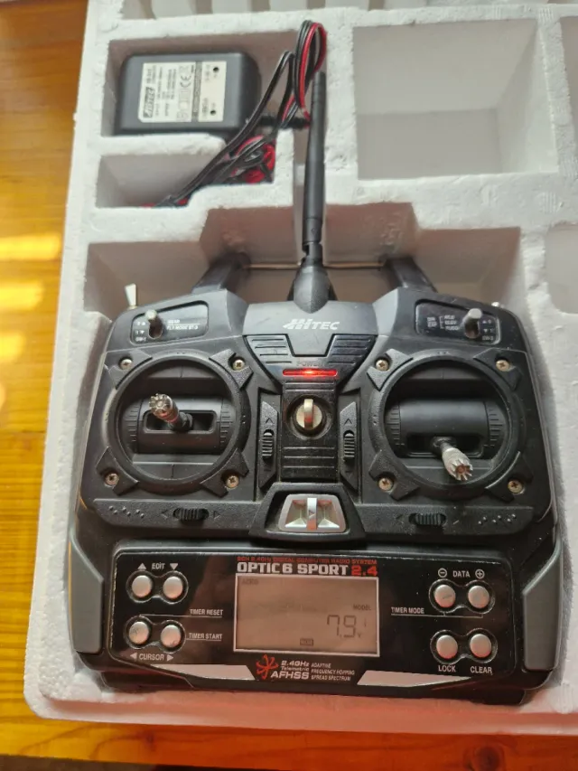 Radiocomando Hitec Optic 6 Sport 2.4GHz per modellismo. vendo a causa inutilizzo in buone condizioni con scatola caricabatterie e manuale di uso originale.