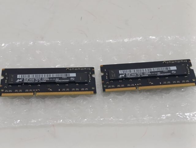 Dettagli del prodottoDue banchi Ram da 4GB 1600 MHz DDR3 (4+4 per un totale di 8GB) 1RX8 PC3L-12800S-11-11-B2, MT8KTF51264HZ, sono originali e perfettamente funzionanti, le vendo per espansione memoria Ram, erano montate di serie su un iMac A1419 fine 2013