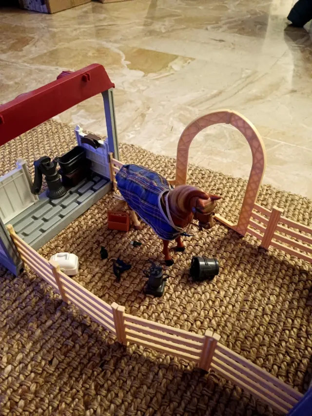 Set da gioco per bambini con un ranch per cavalli. - Struttura richiudibile. - Include accessori per il gioco.