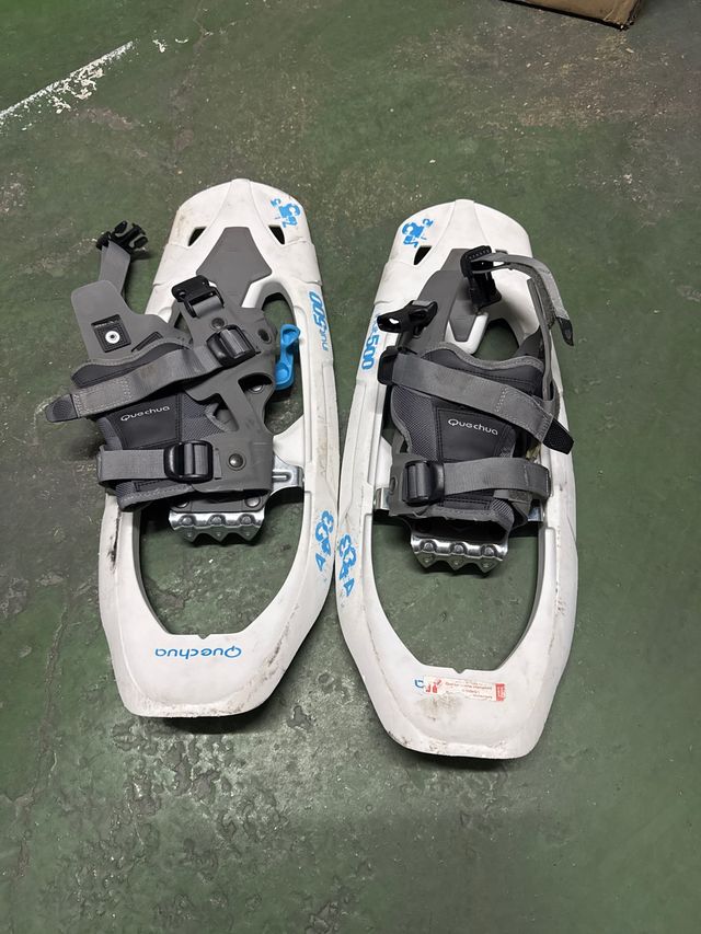 Dettagli del prodottoCoppia di racchette da neve Quechua modello 500. Colore bianco e grigio. Chiusura con cinghie in velcro. Ganci metallici per aderenza. La descrizione è stata tradotta automaticamente.