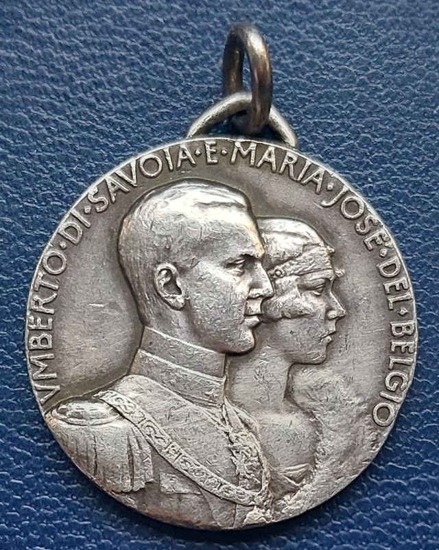 Dettagli del prodottoRara medaglietta commemorativa matrimonio 8 luglio 1930 Umberto di Savoia e Maria Jose del Belgio. In argento peso 6,55 gr. ( visionata da un laboratorio di preziosi con fattura di 25 euro per consulenza scritta preziosi di cui posso inviare copia ) valutazione media su internet non inferiore a 50 euro, ma messa in venduta anche a prezzi fino a 250 euro. Venduta come si presenta in foto in scatoletta per conservare.