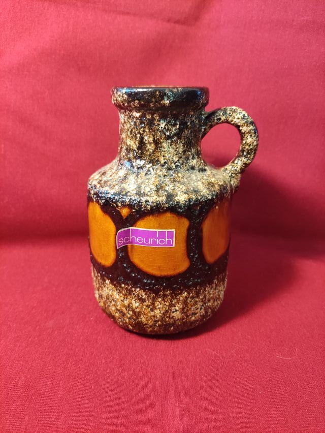 Dettagli del prodottoRaro e bellissimo vaso vintage West Germany originale anni 60-70 codice 414-16 colore ocra e marrone, lavorazione in ceramica della Germania Ovest