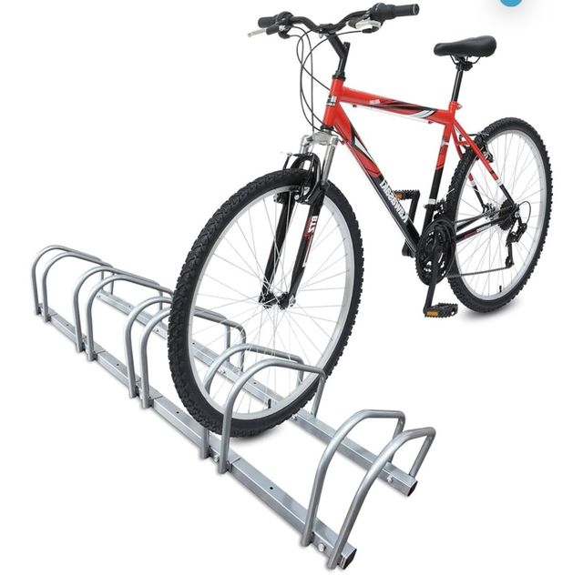 Rastrelliera per biciclette con spazio per 5 bici. Installazione a pavimento e parete colore Argento - Struttura in metallo. - Design a 5 posti.