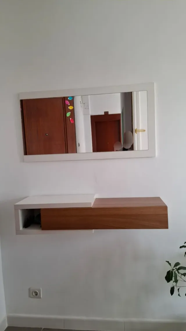 Dettagli del prodottoMobile ingresso moderno con design sospeso. Finitura in bianco e legno. Scomparto aperto. Cassetto con apertura frontale. La descrizione è stata tradotta automaticamente.Misure del prodotto