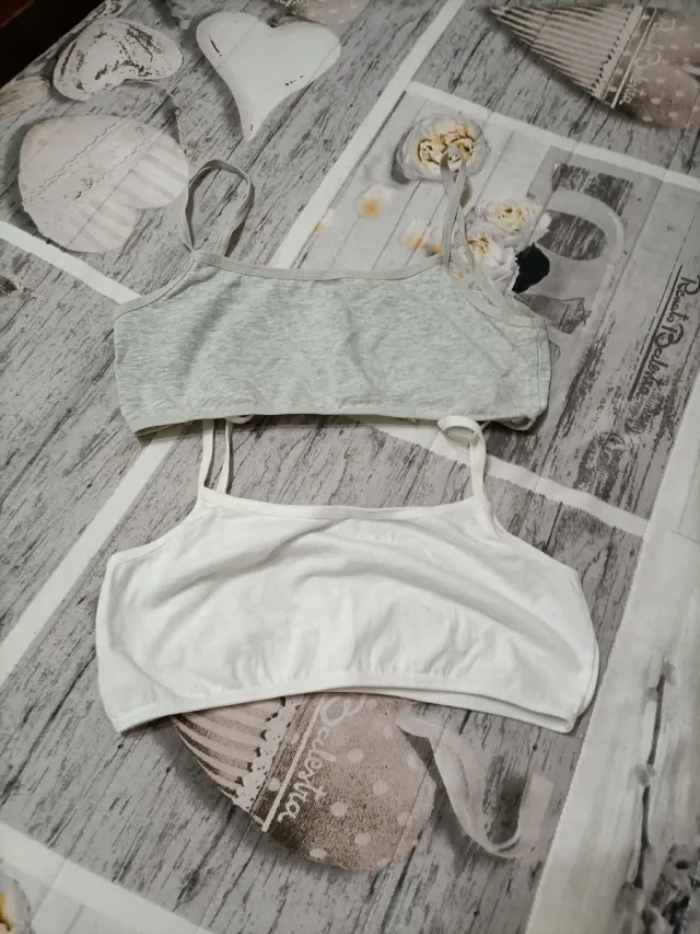 Set di due reggiseni a fascia. 14-15 anni - Uno grigio e uno bianco.