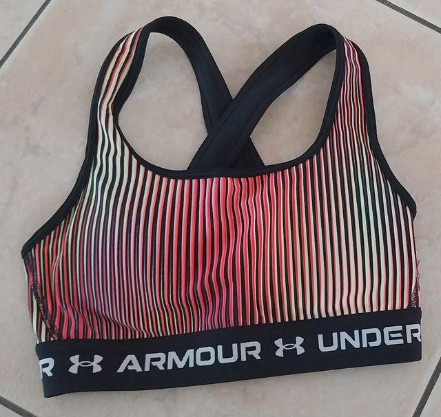 Dettagli del prodottoReggiseno sportivo Under Armour con una fantasia a righe verticali, usato solo tre volte, quindi in ottime condizioni.