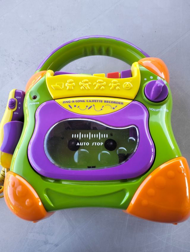 Dettagli del prodottoRegistratore cassette Sing-A-Long per bambini, colorato e in buone condizioni. Uscita per cuffie e Microfono