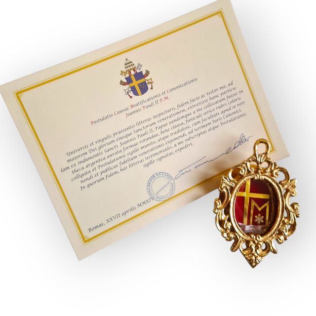 Bellissima reliquia di Papa Giovanni Paolo II. Perfetta per collezionisti o appassionati. Incluso certificato di autenticità Sigillo in ceralacca intatto