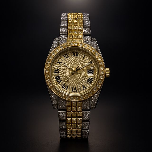 Orologio di Lusso Dorato e Argentato con Diamanti