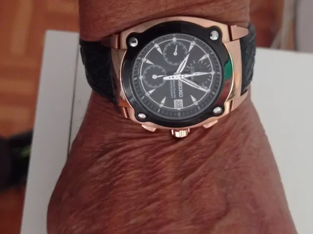 Dettagli del prodottoElegante orologio Seiko da uomo con design cronografo. Vetro zaffiro