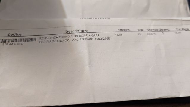 Resistenza per forno superiore e grill marca Whirlpool. - Modello: AKG 250/IX/01 1100/2200 - Codice: B015M3TOFQ