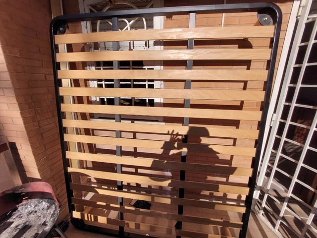 Rete matrimoniale con doghe in legno come da foto. Piedini in legno. Ottime condizioni. Ritiro presso abitazione.