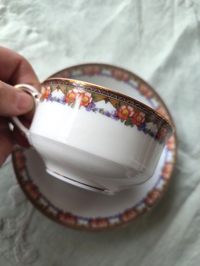 Condizioni perfette senza sbeccature né capelli, segnalo solo uno sbaffo di doratura sotto al piattino