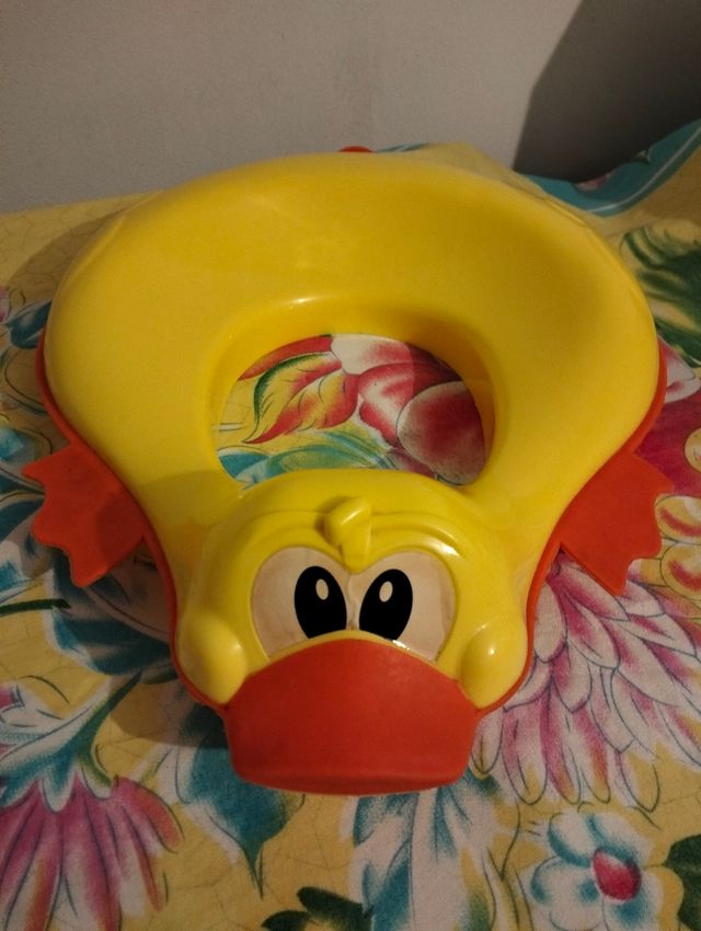 Dettagli del prodottoAssegno questo simpatico riduttore per vasino a forma di papera. È giallo e arancione ed è in ottime condizioni.