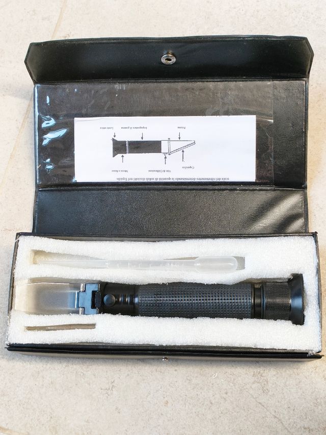 Dettagli del prodottorifrattometro per misurare salinità e densità negli acquari di acqua marina. Di facile utilizzo viene fornito di pipetta per l'aspirazione dell'acqua, cacciavite per la taratura e custodia in similpelle. Facile anche da tarare basta l'utilizzo di acqua distillata.
