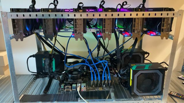Attrezzatura per mining con schede grafiche RTX 3080 e RTX 3070