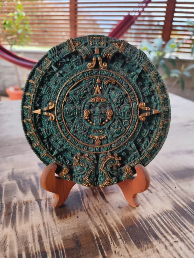 Dettagli del prodottoQuesta superba riproduzione della Piedra del Sol (Pietra del Sole) è stata realizzata dalla storica manifattura "El Arte Azteca, S.A." di Città del Messico, celebre per la qualità delle sue riproduzioni museali.