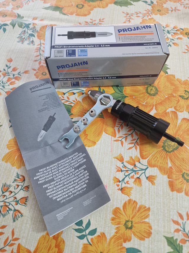 Rivettarice per trapano Projahn Nuovo con scatola Istruzioni d'uso (multilingua, non italiano) 4 teste Chiave