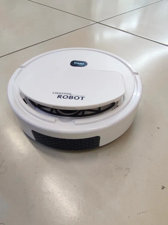 Dettagli del prodottoRobot aspirapolvere di colore bianco, ideale per la pulizia della casa.