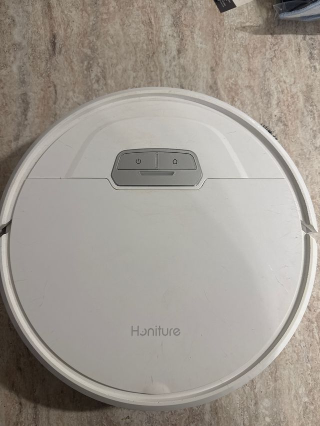 Dettagli del prodottoRobot aspirapolvere Honiture, colore bianco, con accessori di ricambio inclusi.