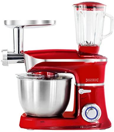 Dettagli del prodottoRobot da cucina multifuzione con funzioni di: Impastatrice, tritacarne, frullatore. Facilita i lavori in cucina Per impastare, mescolare, mixare e macinare; Potenza max 1900 W Design bello ed elegante Multifuzione 5 in 1 per impasti, tritacarne e funzione frullatore Potente motore a lunga durata Ciotola in acciaio inossidabile da 6,5 litri con coperchio Piedini anti-scivolo 6 livelli di velocità con funzione impulso (lavora anche simultaneamente) Coperchio trasparente con apertura per aggiunte Velocità senza scatti per un funzionamento preciso e diversificato 3 set di accessori per compiti più impegnativi: frusta, sbattitore e frust