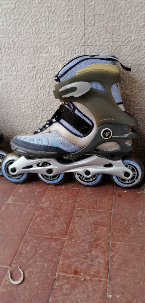 Dettagli del prodottoRoller blade, pattini a rotelle in linea, da donna, n. 40, cm 26, usati pochissimo. Solo un anello di è ossidato, era in garage. Rotelle come nuove. Comodi Misure del prodotto