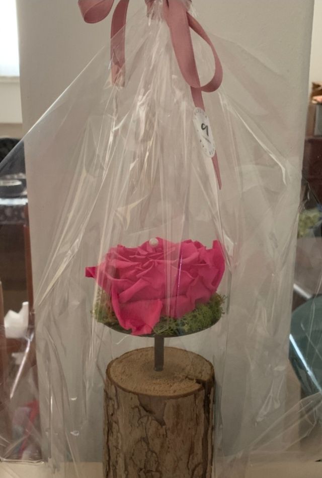 vera rosa stabilizzata alta 25cm su tronchetto di legno