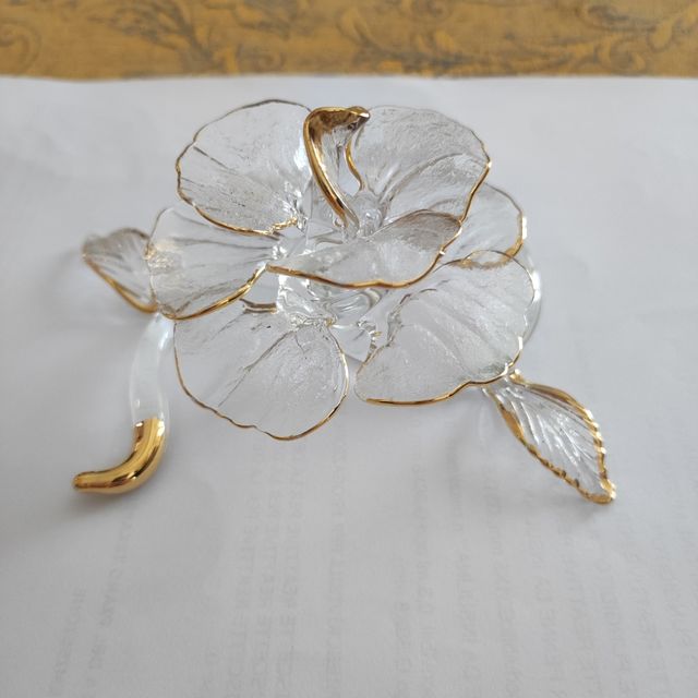 Bomboniera A forma di rosa Materiale: Fine vetro di murano rifinito con bordini in oro